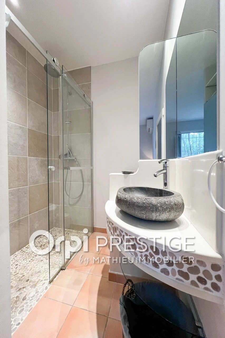 Very well maintained, it features a lovely entrance leading on one side to a living room and an open-plan kitchen extended by a beautiful veranda, a study; on the other side, a studio with a shower room and kitchenette.